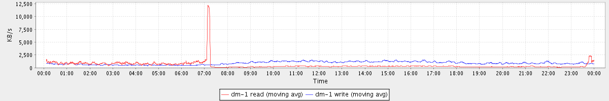 avg(dm-1 read) = 518.28 avg(dm-1 write) = 913.19