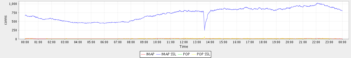 avg(IMAP) = 8.46 avg(IMAP SSL) = 711.58 avg(POP) = 0.09 avg(POP SSL) = 11.41