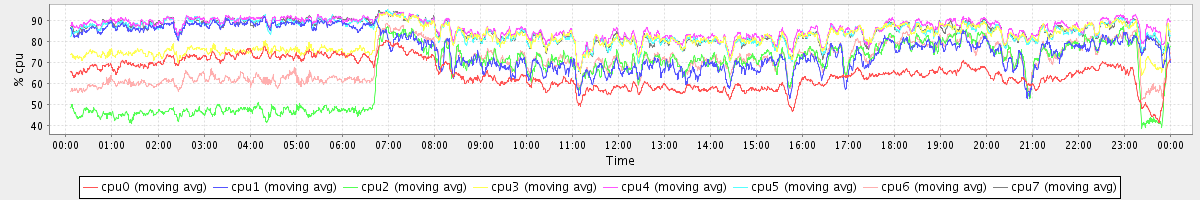 avg(cpu0) = 64.75 avg(cpu1) = 76.61 avg(cpu2) = 65.55 avg(cpu3) = 80.92 avg(cpu4) = 86.56 avg(cpu5) = 84.84 avg(cpu6) = 70.31 avg(cpu7) = 85.05