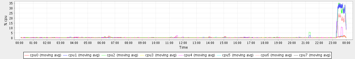 avg(cpu0) = 0.54 avg(cpu1) = 0.43 avg(cpu2) = 0.36 avg(cpu3) = 0.37 avg(cpu4) = 0.27 avg(cpu5) = 0.24 avg(cpu6) = 0.21 avg(cpu7) = 0.16