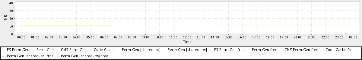 avg(PS Perm Gen) = 39.88 avg(Perm Gen) = 0.00 avg(CMS Perm Gen) = 0.00 avg(Code Cache) = 11.49 avg(Perm Gen [shared-ro]) = 0.00 avg(Perm Gen [shared-rw]) = 0.00 avg(PS Perm Gen free) = 0.09 avg(Perm Gen free) = 0.00 avg(CMS Perm Gen free) = 0.00 avg(Code Cache free) = 0.05 avg(Perm Gen [shared-ro] free) = 0.00 avg(Perm Gen [shared-rw] free) = 0.00