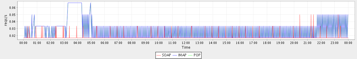 Host zm01-int.stanford.edu: Mailboxd: Request Rate by Client Protocol