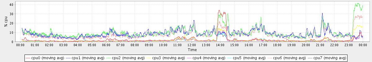 avg(cpu0) = 1.21 avg(cpu1) = 0.28 avg(cpu2) = 0.28 avg(cpu3) = 0.18 avg(cpu4) = 0.15 avg(cpu5) = 0.17 avg(cpu6) = 0.23 avg(cpu7) = 0.16