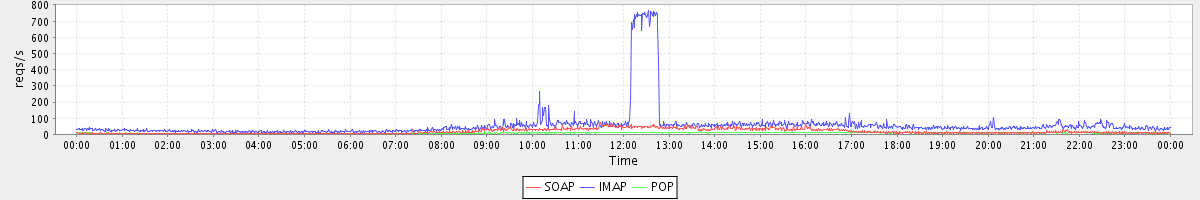 Host zm01.stanford.edu: Mailboxd: Request Rate by Client Protocol