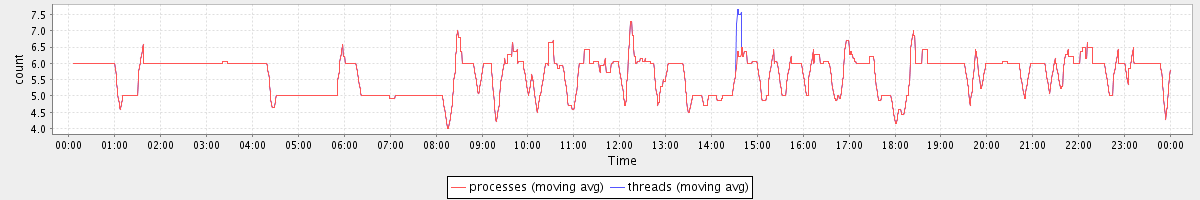 avg(processes) = 5.65 avg(threads) = 5.66