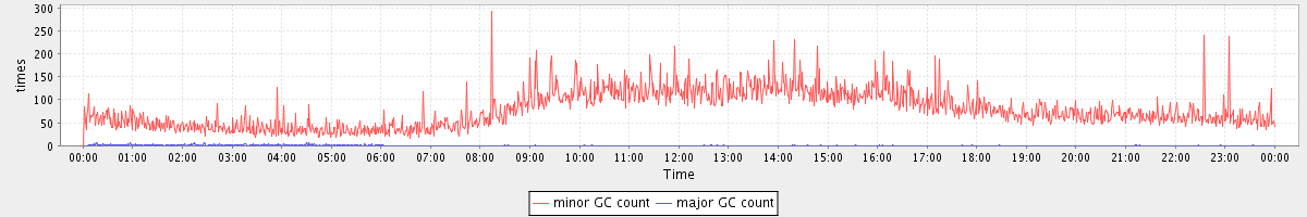 avg(minor GC count) = 77.84 avg(major GC count) = 0.37