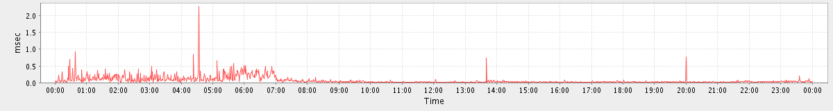 max(SearchConvRequest) = 108.00 max(AddMsgRequest) = 86.00 max(NoOpRequest) = 123.00 max(GetFolderRequest) = 725.00 max(SyncRequest) = 1760.00 max(GetMsgRequest) = 349.00 max(GetAppointmentRequest) = 344.00 max(SearchRequest) = 226.00 max(GetContactsRequest) = 199.00 max(MsgActionRequest.delete) = 821.00