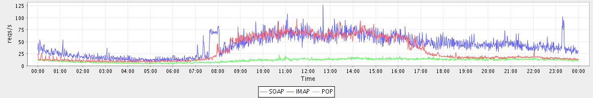Host zm06.stanford.edu: Mailboxd: Request Rate by Client Protocol