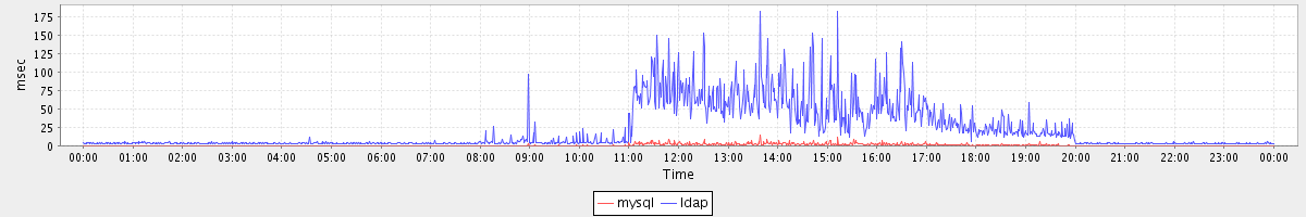 avg(mysql) = 0.92 avg(ldap) = 21.34