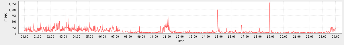 max(SearchConvRequest) = 88.00 max(MsgActionRequest.move) = 38.00 max(NoOpRequest) = 315.00 max(GetFolderRequest) = 550.00 max(SyncRequest) = 1363.00 max(GetMsgRequest) = 283.00 max(GetAppointmentRequest) = 245.00 max(SearchRequest) = 244.00 max(MsgActionRequest.delete) = 126.00 max(ConvActionRequest.trash) = 56.00