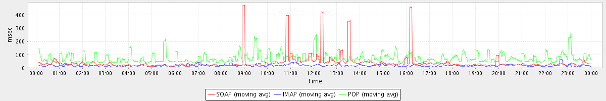 avg(IMAP) = 9.93 avg(IMAP SSL) = 938.92 avg(POP) = 0.00 avg(POP SSL) = 11.19