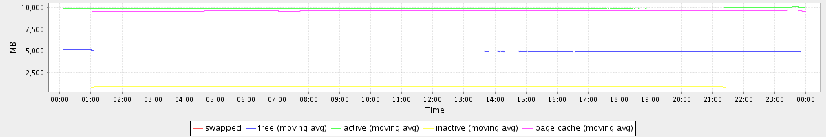avg(swapped) = 0.00 avg(free) = 4947.15 avg(active) = 9901.10 avg(inactive) = 815.46 avg(page cache) = 9621.32