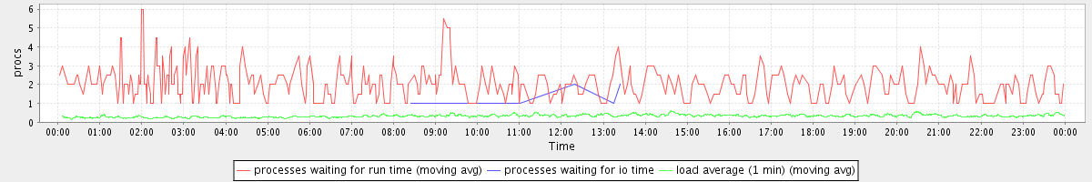 avg(processes waiting for run time) = 0.32 avg(processes waiting for io time) = 0.00 avg(load average (1 min)) = 0.33