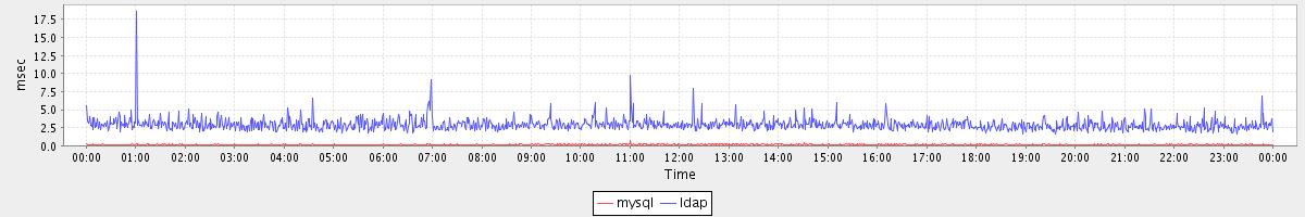 avg(mysql) = 0.18 avg(ldap) = 2.93