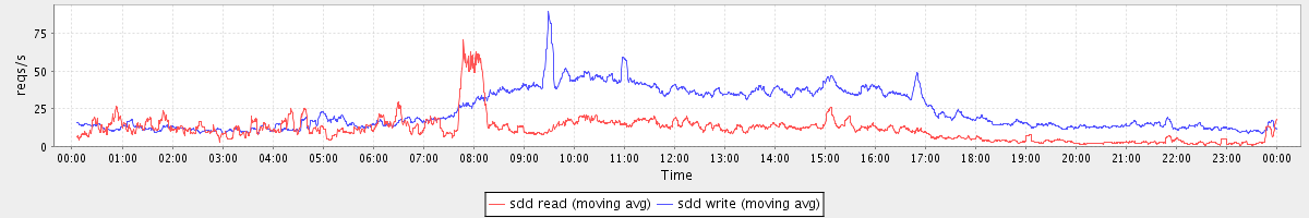 avg(sda read) = 24.09 avg(sda write) = 60.79