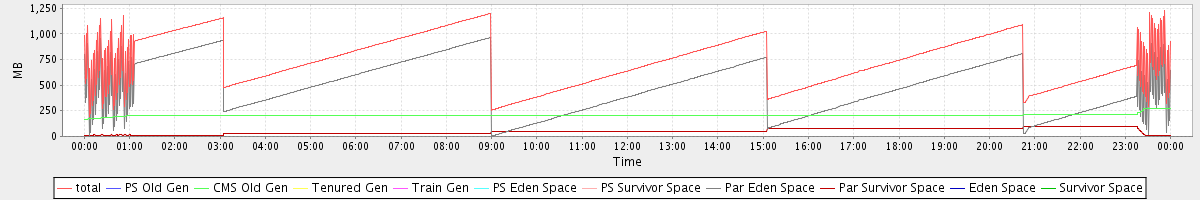 avg(total) = 740.21 avg(PS Old Gen) = 0.00 avg(CMS Old Gen) = 208.45 avg(Tenured Gen) = 0.00 avg(Train Gen) = 0.00 avg(PS Eden Space) = 0.00 avg(PS Survivor Space) = 0.00 avg(Par Eden Space) = 483.37 avg(Par Survivor Space) = 48.40 avg(Eden Space) = 0.00 avg(Survivor Space) = 0.00