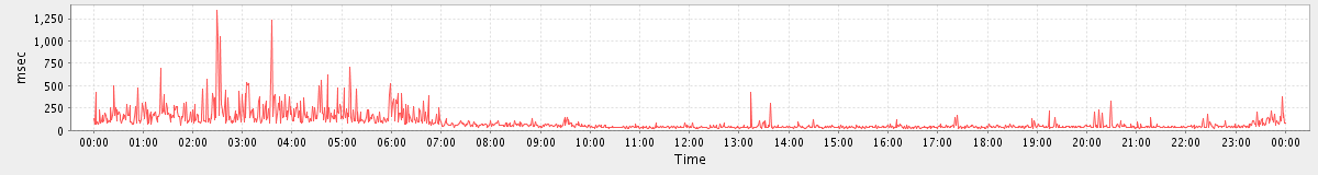 avg(SyncGalRequest) = 3074.32 avg(SendInviteReplyRequest) = 547.50 avg(BackupQueryRequest) = 525.75 avg(BrowseRequest) = 1696.50 avg(MaintainTablesRequest) = 228379.00 avg(GetQuotaUsageRequest) = 3756.00 avg(DeleteAccountRequest) = 2192.00 avg(BackupRequest) = 11599.50 avg(FolderActionRequest.empty) = 1910.78 avg(FolderActionRequest.read) = 1082.17