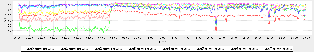 avg(cpu0) = 71.05 avg(cpu1) = 85.56 avg(cpu2) = 70.70 avg(cpu3) = 84.95 avg(cpu4) = 90.90 avg(cpu5) = 88.83 avg(cpu6) = 78.34 avg(cpu7) = 89.65