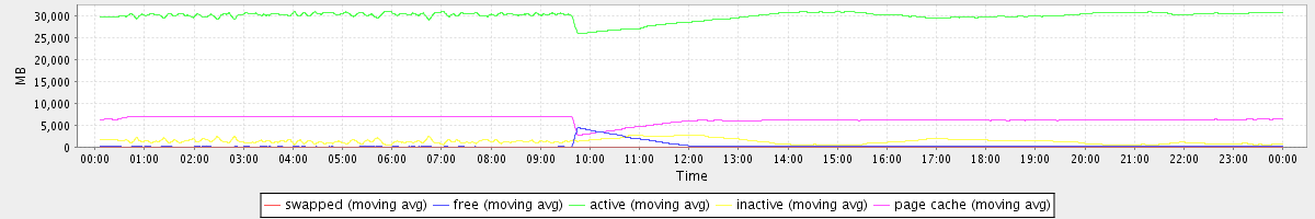 avg(swapped) = 0.23 avg(free) = 333.94 avg(active) = 29875.95 avg(inactive) = 1309.88 avg(page cache) = 6313.43