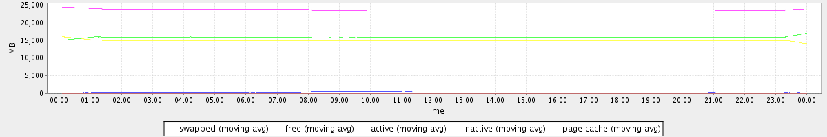 avg(swapped) = 0.25 avg(free) = 332.04 avg(active) = 15856.38 avg(inactive) = 14901.54 avg(page cache) = 23627.98