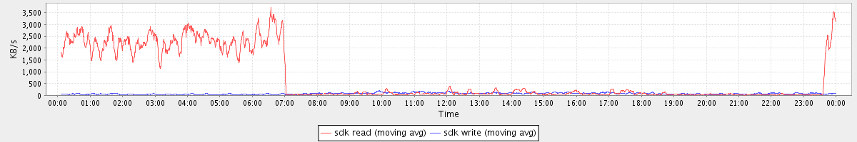 avg(sda2 read) = 0.44 avg(sda2 write) = 6.24