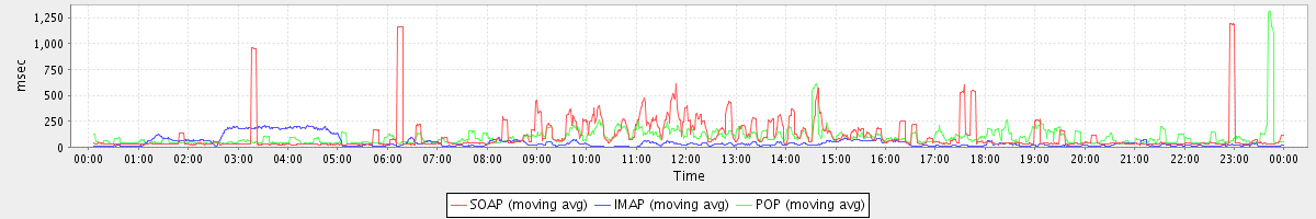 Host zm05.stanford.edu: Mailboxd: Response Time by Client Protocol