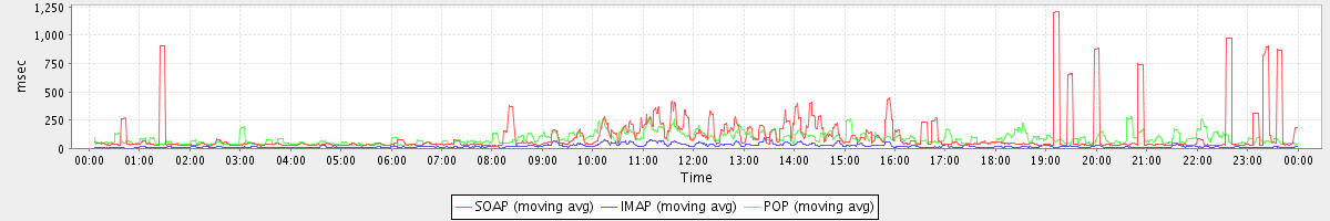 Host zm07.stanford.edu: Mailboxd: Response Time by Client Protocol