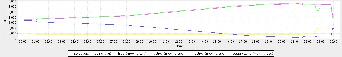 avg(swapped) = 0.20 avg(free) = 1737.97 avg(active) = 5107.19 avg(inactive) = 870.55 avg(page cache) = 5047.67