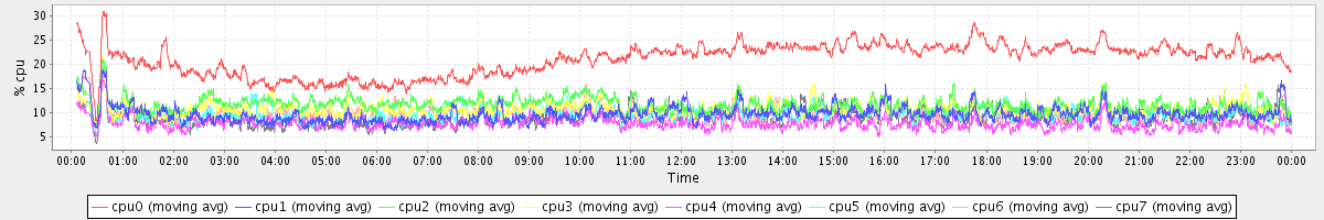 avg(cpu0) = 1.49 avg(cpu1) = 0.13 avg(cpu2) = 0.22 avg(cpu3) = 0.11 avg(cpu4) = 0.07 avg(cpu5) = 0.08 avg(cpu6) = 0.14 avg(cpu7) = 0.08