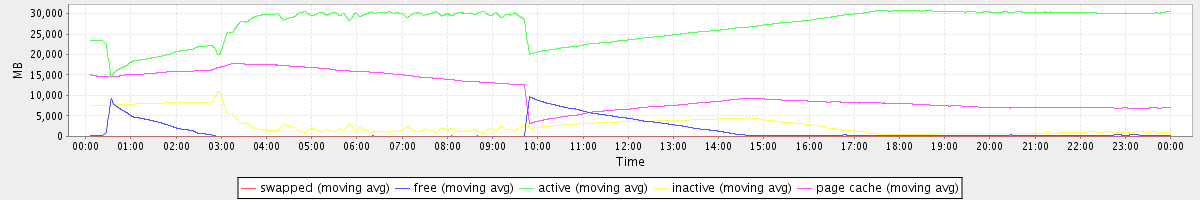 avg(swapped) = 0.23 avg(free) = 1329.01 avg(active) = 27288.06 avg(inactive) = 2785.44 avg(page cache) = 10614.74