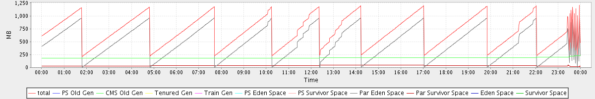 avg(total) = 701.91 avg(PS Old Gen) = 0.00 avg(CMS Old Gen) = 187.22 avg(Tenured Gen) = 0.00 avg(Train Gen) = 0.00 avg(PS Eden Space) = 0.00 avg(PS Survivor Space) = 0.00 avg(Par Eden Space) = 478.39 avg(Par Survivor Space) = 36.29 avg(Eden Space) = 0.00 avg(Survivor Space) = 0.00