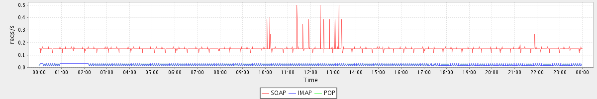 Host zm02-int.stanford.edu: Mailboxd: Request Rate by Client Protocol