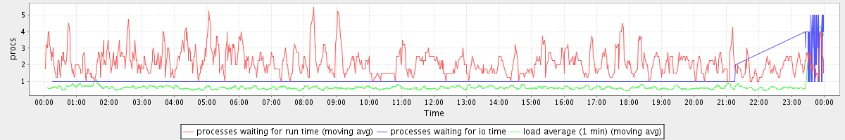 avg(processes waiting for run time) = 0.71 avg(processes waiting for io time) = 0.08 avg(load average (1 min)) = 0.69
