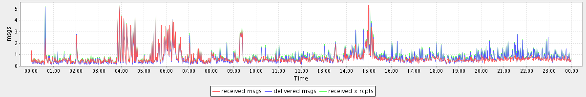 avg(received msgs) = 0.71 avg(delivered msgs) = 0.77 avg(received x rcpts) = 0.88