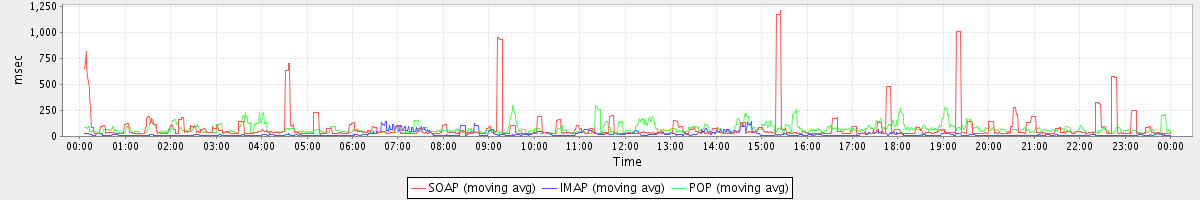 Host zm08.stanford.edu: Mailboxd: Response Time by Client Protocol