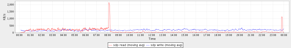 avg(sda2 read) = 0.29 avg(sda2 write) = 6.23