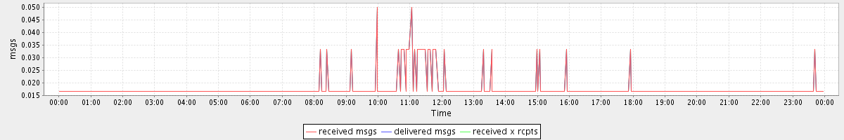 avg(received msgs) = 0.01 avg(delivered msgs) = 0.01 avg(received x rcpts) = 0.01