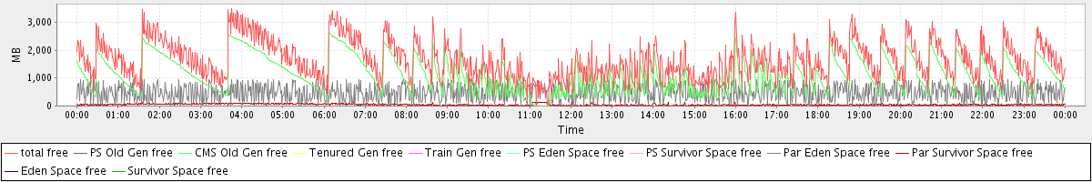 avg(total free) = 1648.08 avg(PS Old Gen free) = 0.00 avg(CMS Old Gen free) = 1127.19 avg(Tenured Gen free) = 0.00 avg(Train Gen free) = 0.00 avg(PS Eden Space free) = 0.00 avg(PS Survivor Space free) = 0.00 avg(Par Eden Space free) = 476.22 avg(Par Survivor Space free) = 44.67 avg(Eden Space free) = 0.00 avg(Survivor Space free) = 0.00