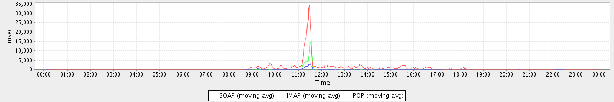 Host zm01.stanford.edu: Mailboxd: Response Time by Client Protocol