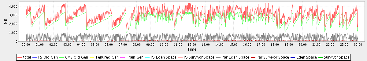 avg(total free) = 1598.15 avg(PS Old Gen free) = 0.00 avg(CMS Old Gen free) = 1084.80 avg(Tenured Gen free) = 0.00 avg(Train Gen free) = 0.00 avg(PS Eden Space free) = 0.00 avg(PS Survivor Space free) = 0.00 avg(Par Eden Space free) = 481.87 avg(Par Survivor Space free) = 31.47 avg(Eden Space free) = 0.00 avg(Survivor Space free) = 0.00