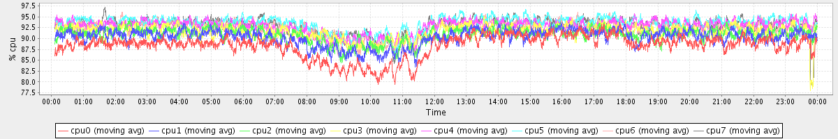 avg(cpu0) = 88.37 avg(cpu1) = 90.29 avg(cpu2) = 90.85 avg(cpu3) = 91.53 avg(cpu4) = 92.73 avg(cpu5) = 93.50 avg(cpu6) = 92.43 avg(cpu7) = 92.86