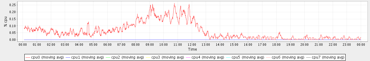 avg(cpu0) = 0.01 avg(cpu1) = 0.05 avg(cpu2) = 0.04 avg(cpu3) = 0.01 avg(cpu4) = 0.01 avg(cpu5) = 0.01 avg(cpu6) = 0.04 avg(cpu7) = 0.01