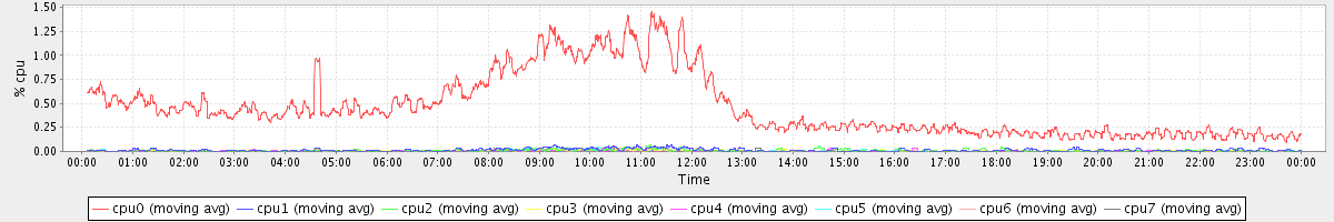 avg(cpu0) = 0.46 avg(cpu1) = 0.01 avg(cpu2) = 0.01 avg(cpu3) = 0.01 avg(cpu4) = 0.00 avg(cpu5) = 0.01 avg(cpu6) = 0.01 avg(cpu7) = 0.00