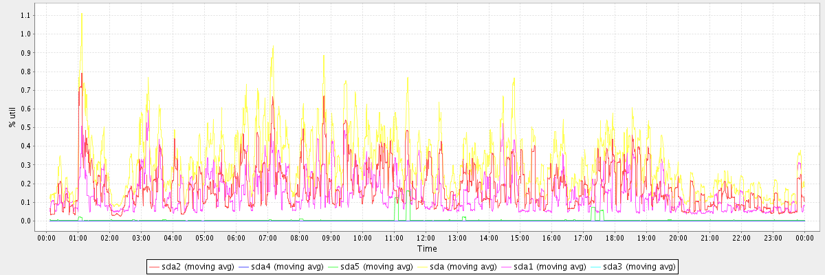 avg(sda2) = 0.18 avg(sda4) = 0.00 avg(sda5) = 0.01 avg(sda) = 0.31 avg(sda1) = 0.15 avg(sda3) = 0.00