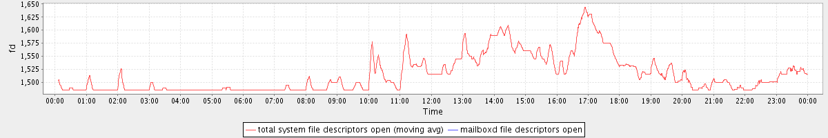 avg(total system file descriptors open) = 1514.81 avg(mailboxd file descriptors open) = 0.00