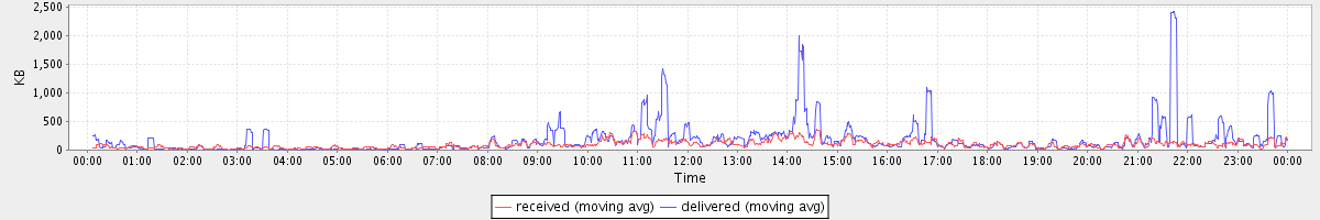 avg(received) = 94.99 avg(delivered) = 174.57