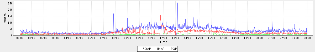 Host zm01.stanford.edu: Mailboxd: Request Rate by Client Protocol