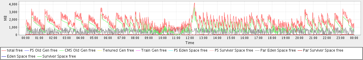 avg(total free) = 1610.06 avg(PS Old Gen free) = 0.00 avg(CMS Old Gen free) = 1081.82 avg(Tenured Gen free) = 0.00 avg(Train Gen free) = 0.00 avg(PS Eden Space free) = 0.00 avg(PS Survivor Space free) = 0.00 avg(Par Eden Space free) = 483.92 avg(Par Survivor Space free) = 44.33 avg(Eden Space free) = 0.00 avg(Survivor Space free) = 0.00