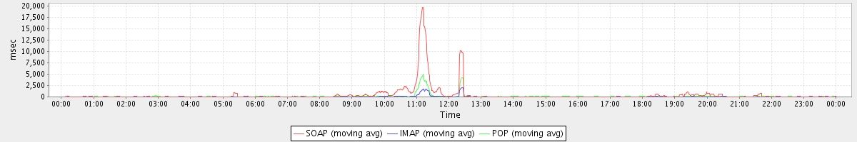 Host zm07.stanford.edu: Mailboxd: Response Time by Client Protocol