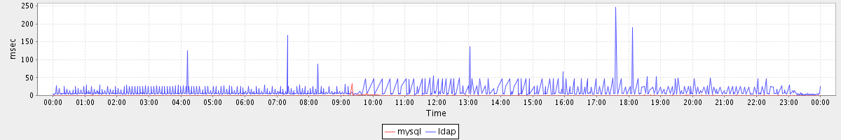 avg(mysql) = 0.38 avg(ldap) = 7.65